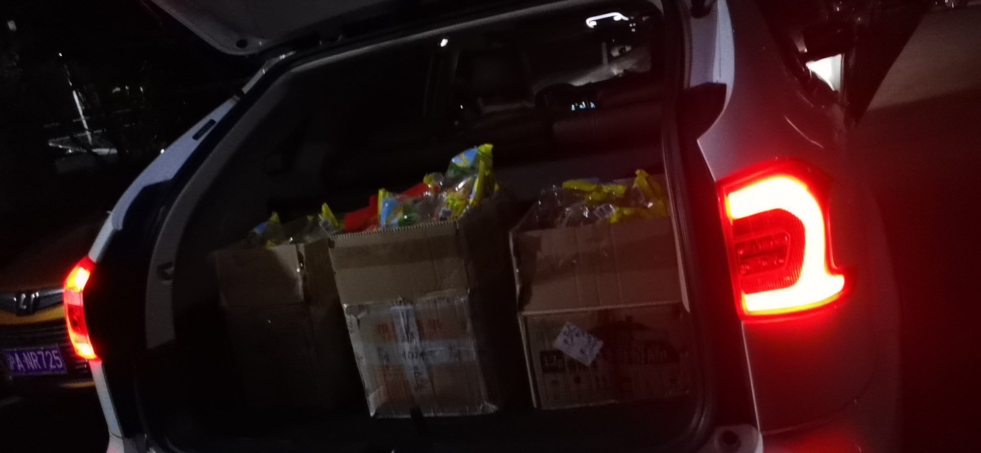 这是出发前的照片,满满三箱子零食
